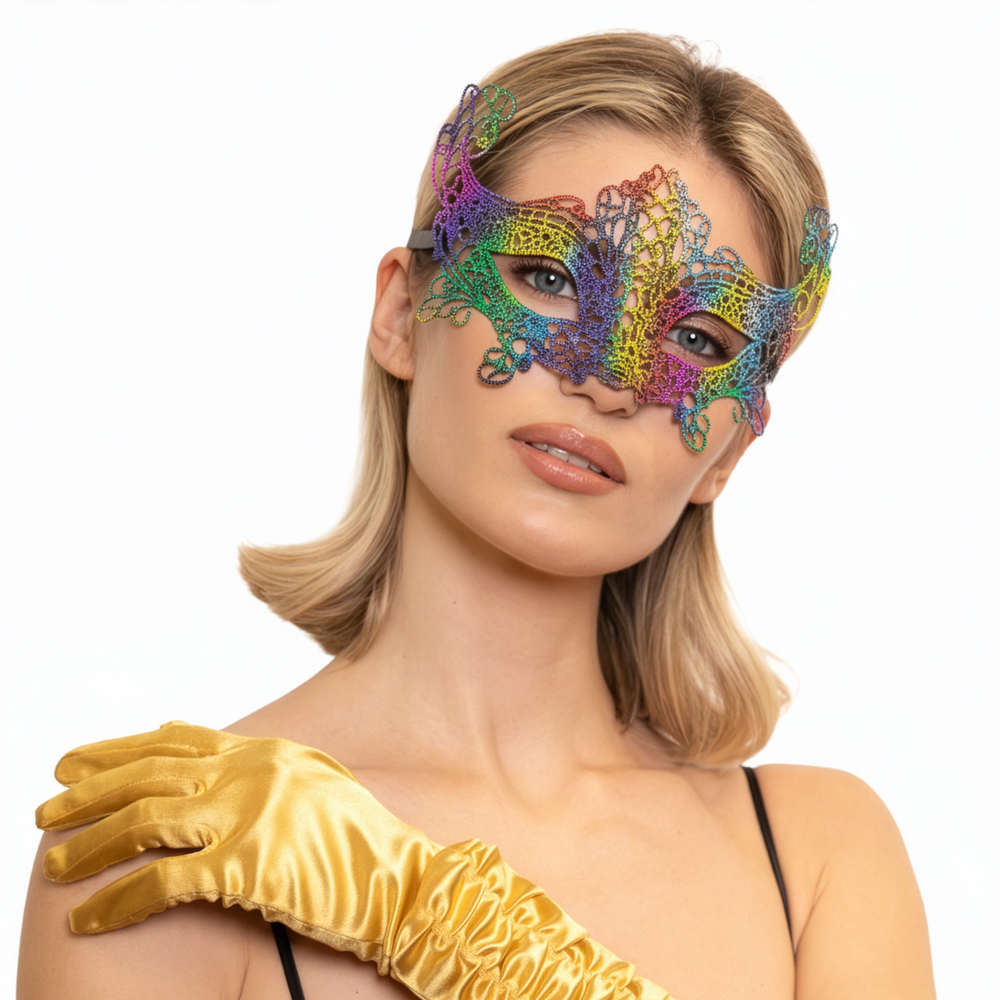 Maska wenecka Wilk koronkowa kolorowa 21,5x11cm