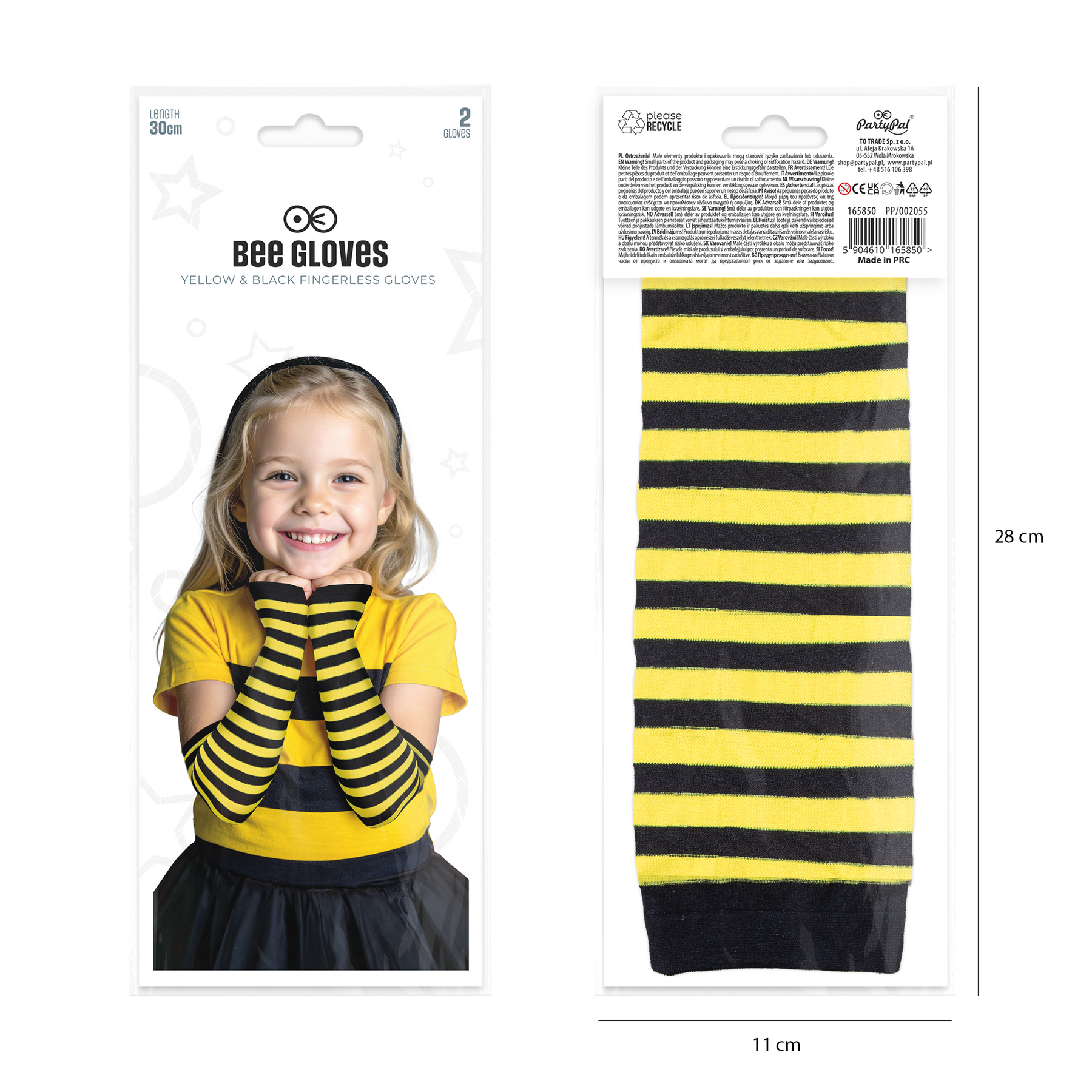 Rękawiczki bez palców w paski żółto czarne