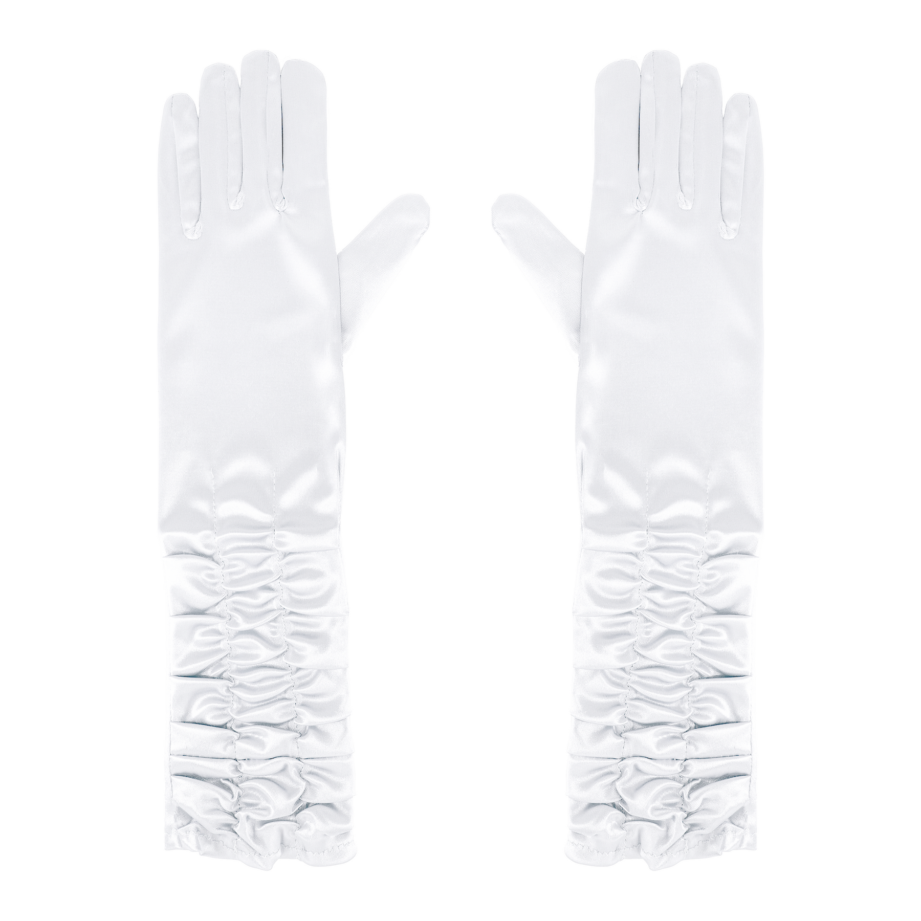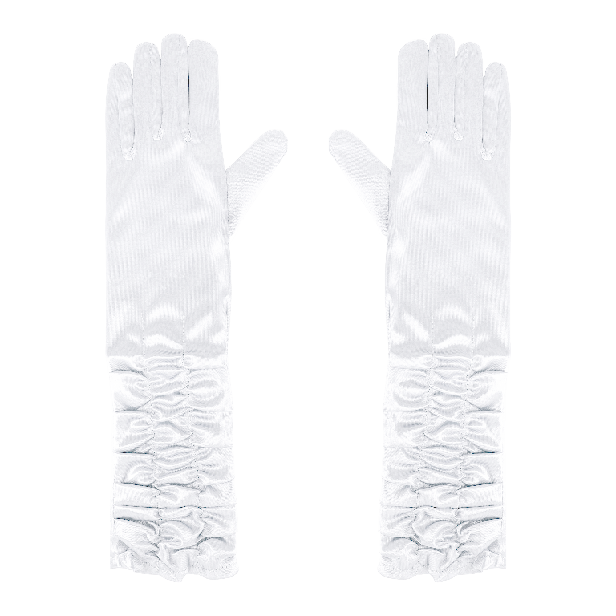 Rękawiczki satynowe z marszczeniem białe 42 cm