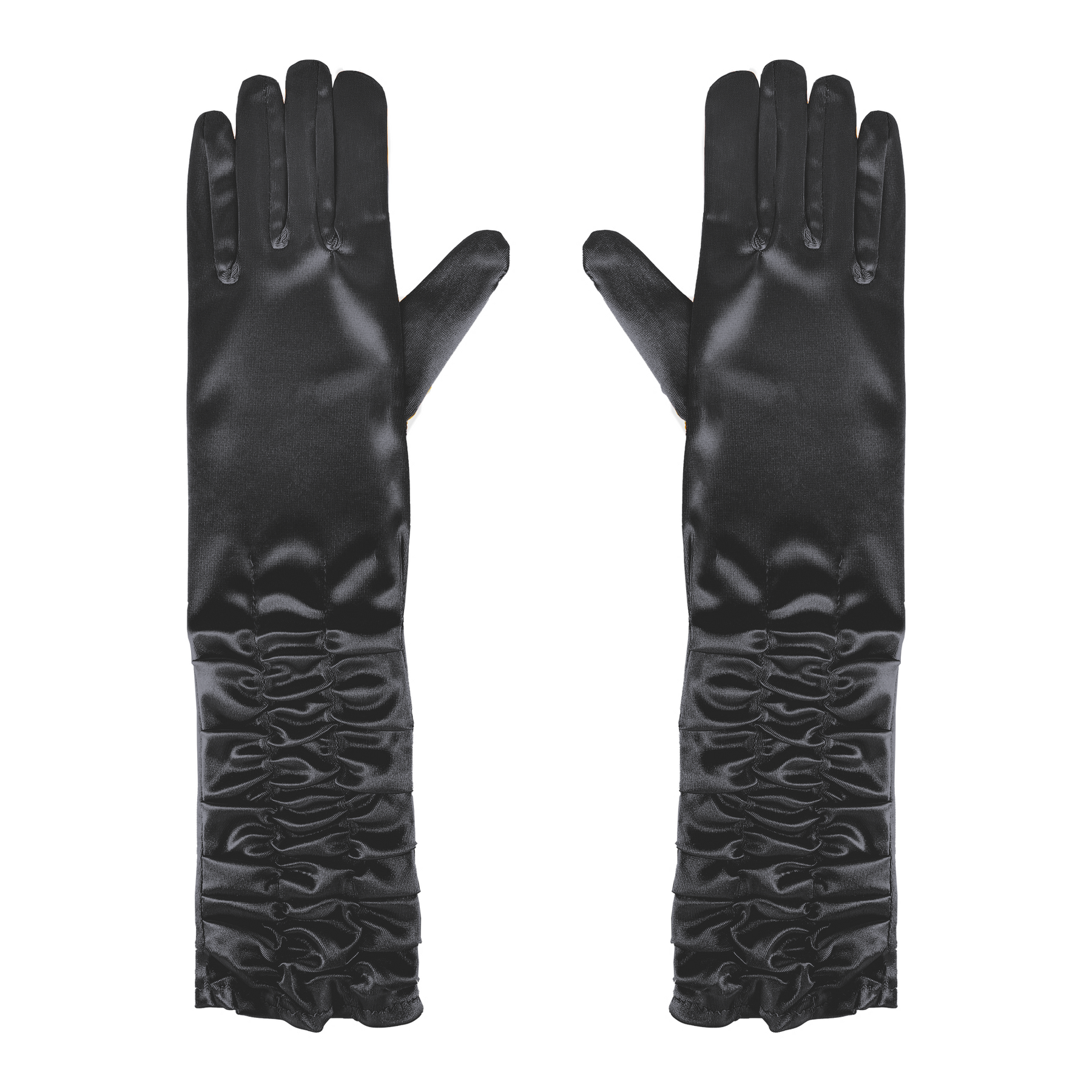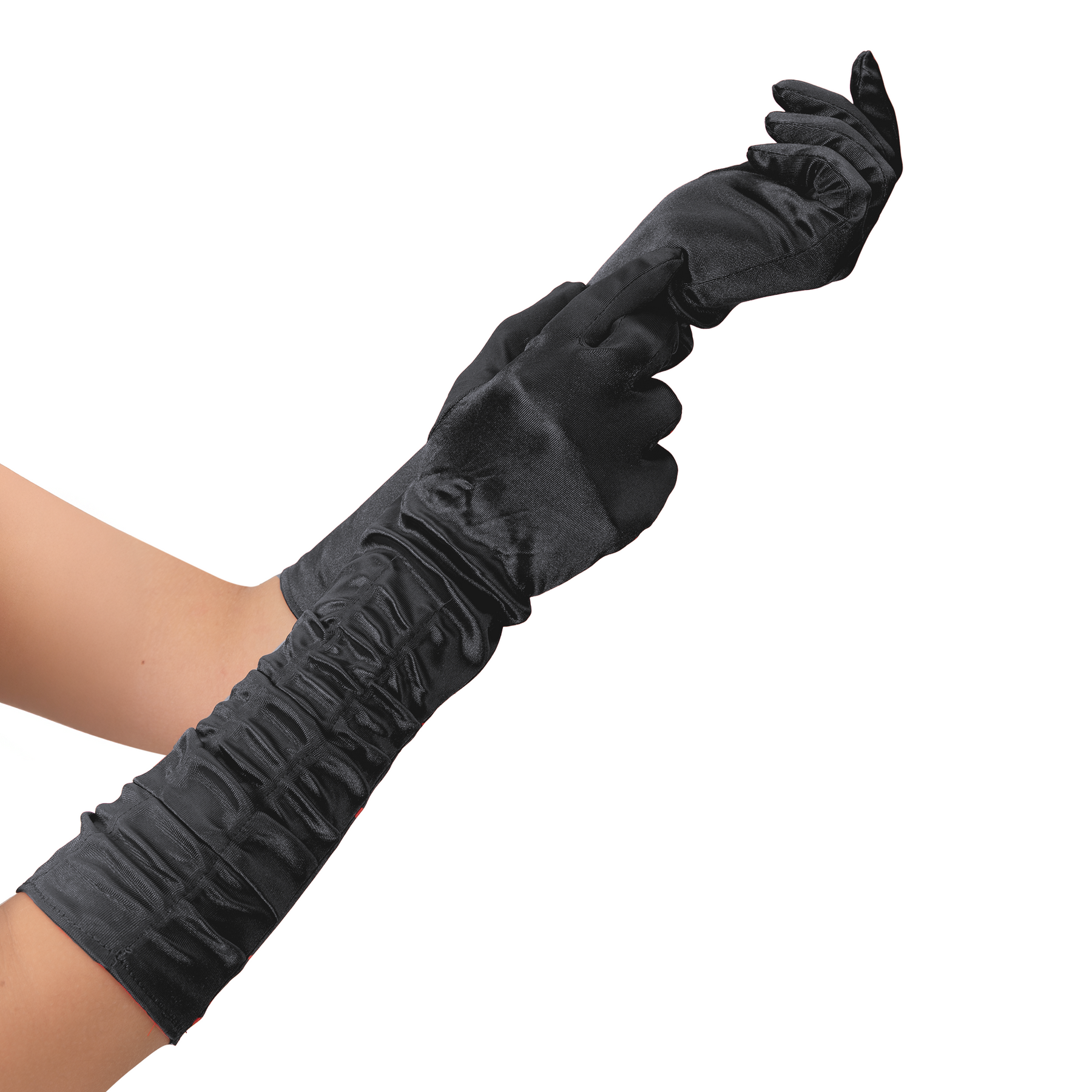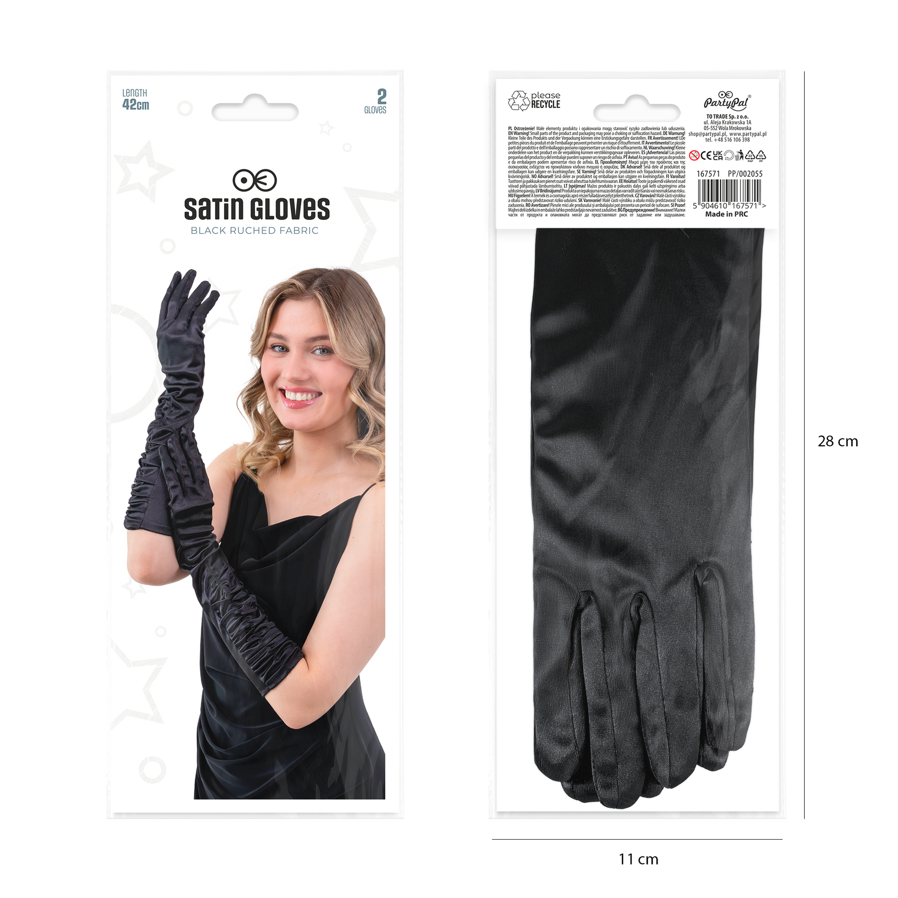 Rękawiczki satynowe z marszczeniem czarne 42 cm