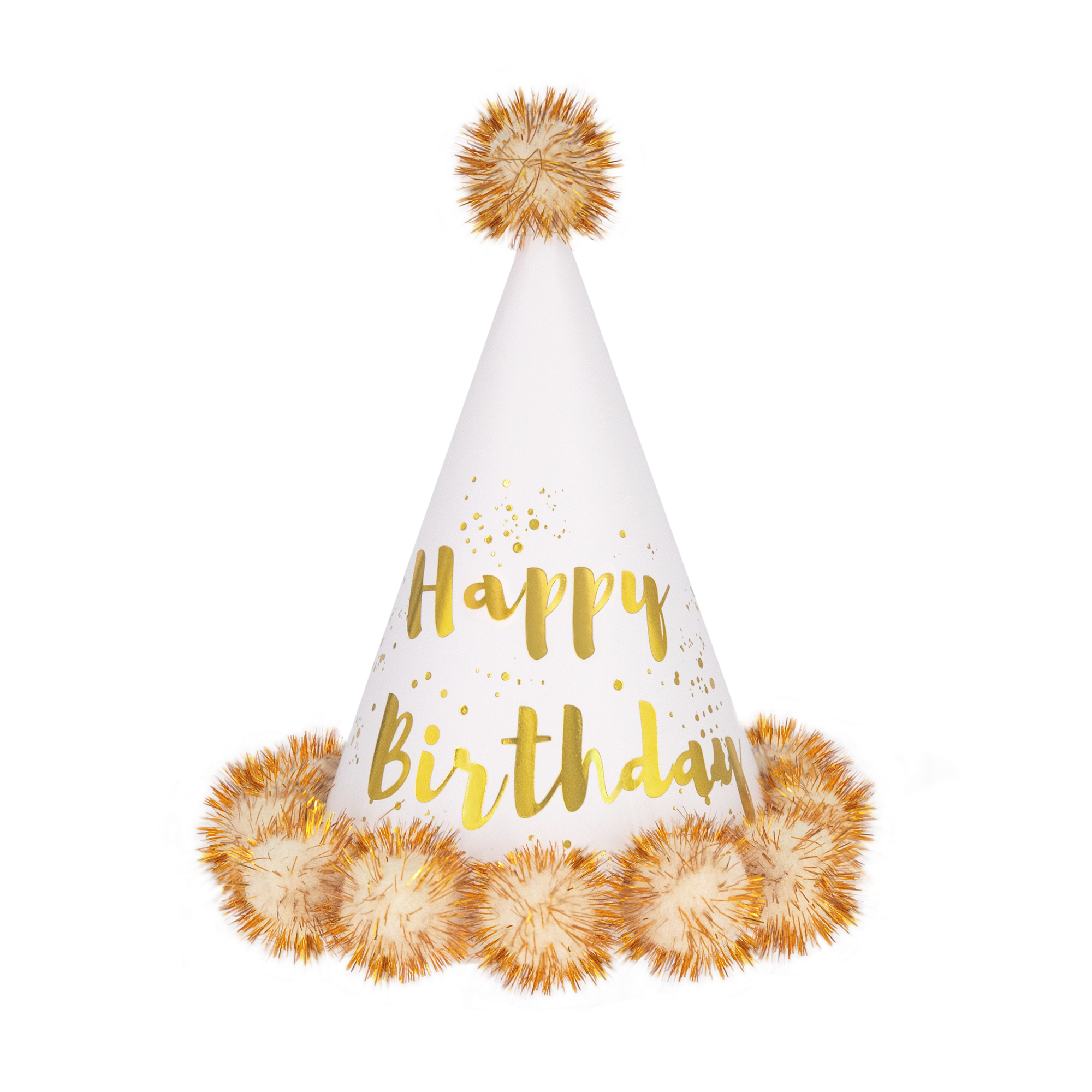 Czapeczka urodzinowa z pomponami Happy Birthday kremowo-złota 1szt.