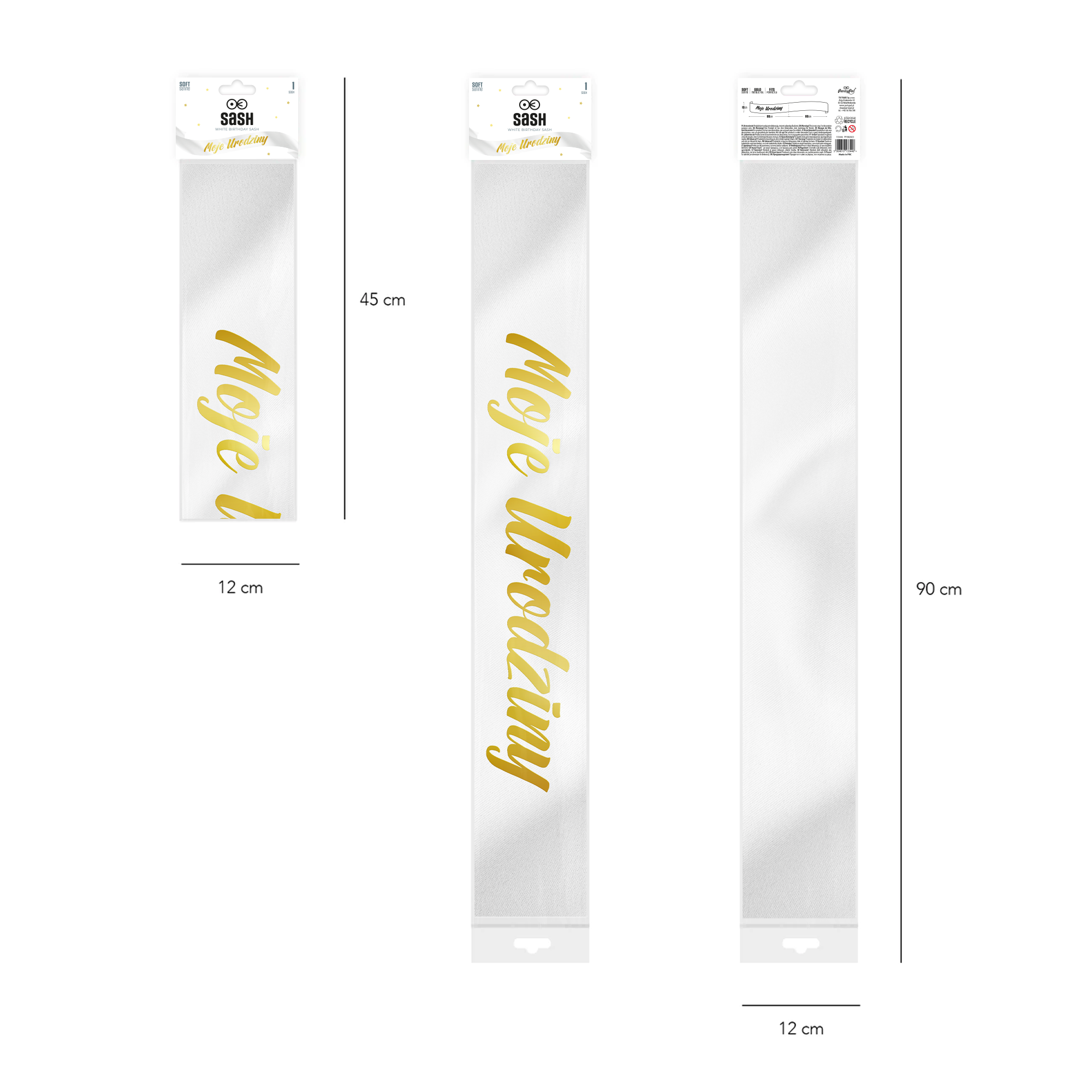 Szarfa urodzinowa Moje Urodziny biało-złota 10x160cm